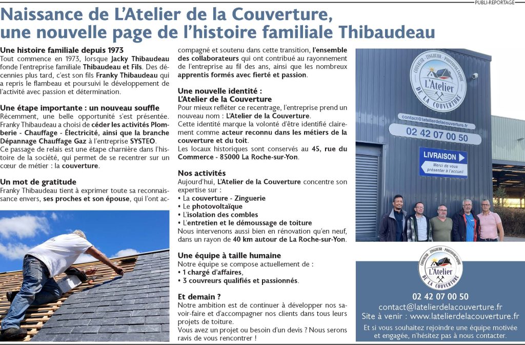 Avec plus de 40 ans d’expérience, L’ATELIER DE LA COUVERTURE vous accompagne dans tous vos projets de couverture, zinguerie, isolation des combles et installation de panneaux photovoltaïques.